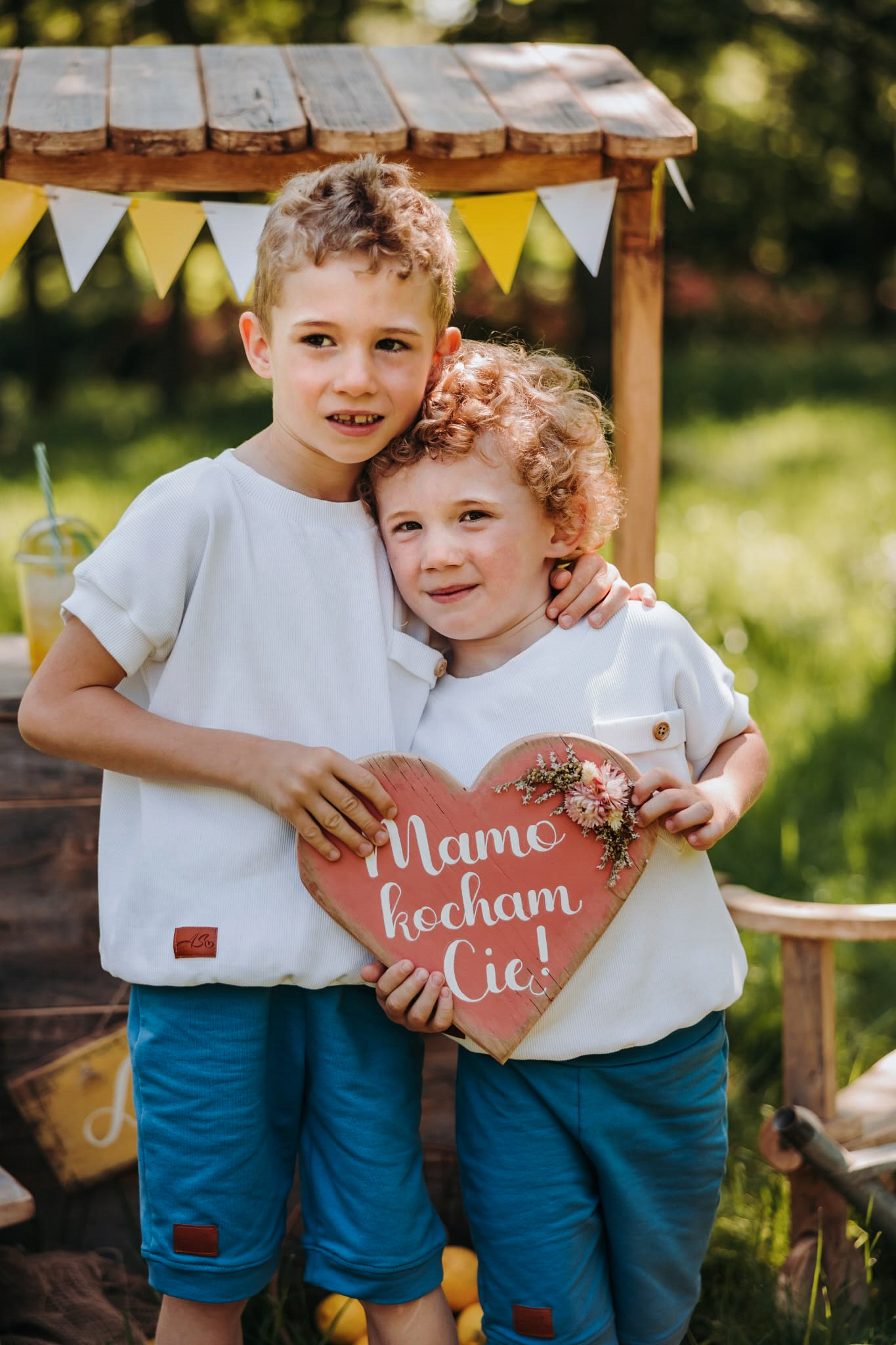 Beżowa koszula na stójce z muślinu, stworzona dla chłopców
