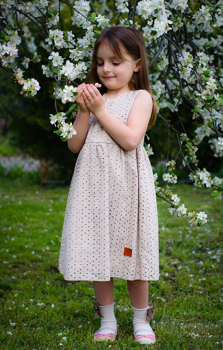 Beżowa sukienka z batystu haftowanego to wyjątkowa propozycja dla każdej dziewczynki, która chce poczuć się jak prawdziwa księżniczka. Uszyta z certyfikowanej, wyróżnia się pięknym beżowym kolorem i subtelnym, prostym krojem, który dodaje elegancji. Sukienka w stylu Boho, wpisuje się w naturalny i swobodny styl. Idealna na sesje zdjęciowe, uroczyste okazje, jak i na co dzień.
